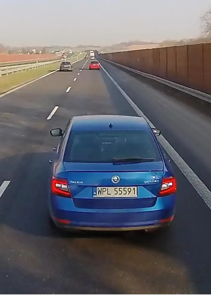 Skręca z środkowego pasa w prawo Jeździ jak zjeb gaz na max mózg na min